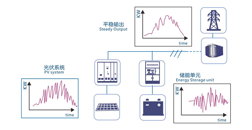 針對(duì)風(fēng)能或太陽(yáng)能發(fā)電不連續(xù)、不穩(wěn)定、不可控的特點(diǎn),我司提供配套的儲(chǔ)能系統(tǒng),可平滑風(fēng)力及光伏發(fā)電輸出,實(shí)現(xiàn)跟蹤計(jì)劃發(fā)電。